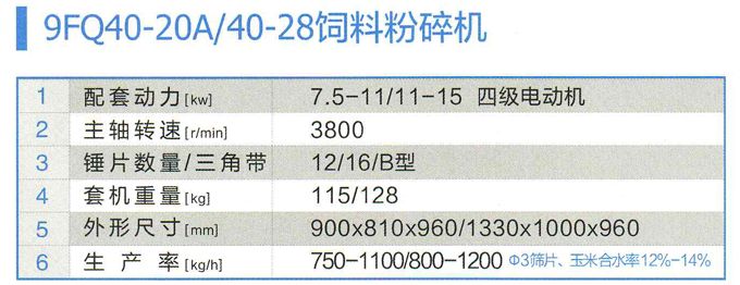1. 9FQ40-20A/40-28饲料粉碎机9FQ40-20A/40-28饲料粉碎机
