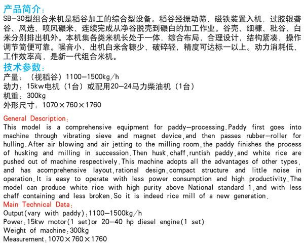 鱼台县三高机械有限公司三高牌组合砻碾米机有NZJ和SB两个系列,NZJ-10/8.5联合米机85年、90年连续荣获省优,联系人:袁经理:13705477344