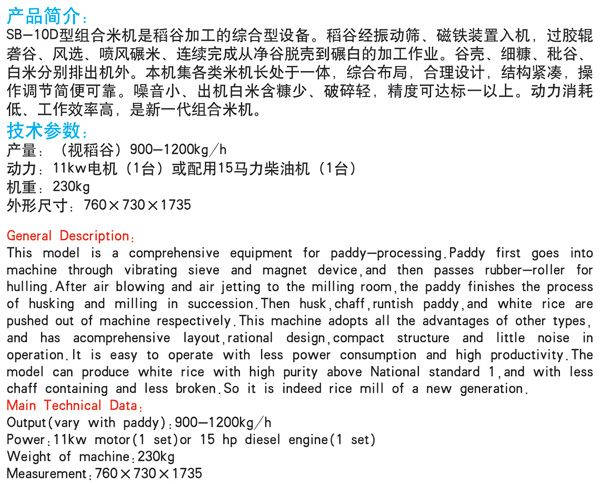 鱼台县三高机械有限公司三高牌组合砻碾米机有NZJ和SB两个系列,NZJ-10/8.5联合米机85年、90年连续荣获省优,联系人:袁经理:13705477344